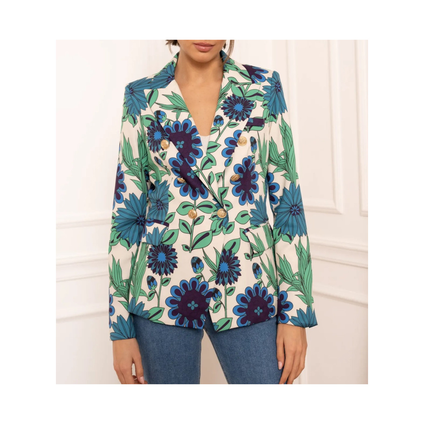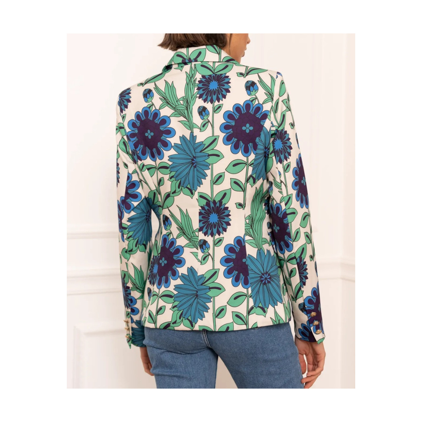 Veste / Blazer très élégante, boutonnages dorés, motif fleurs.