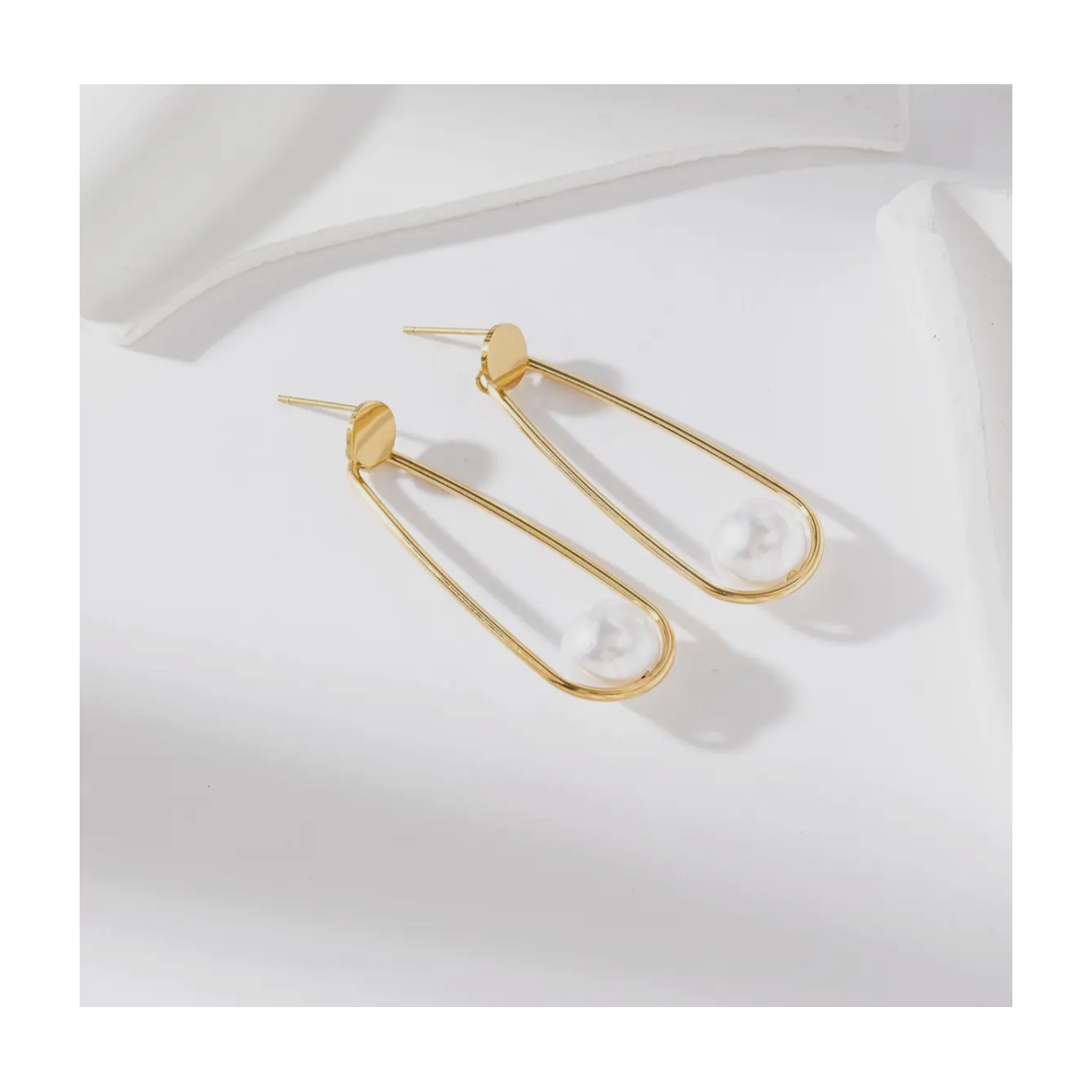 Boucles d'oreilles pendante dorée avec perle