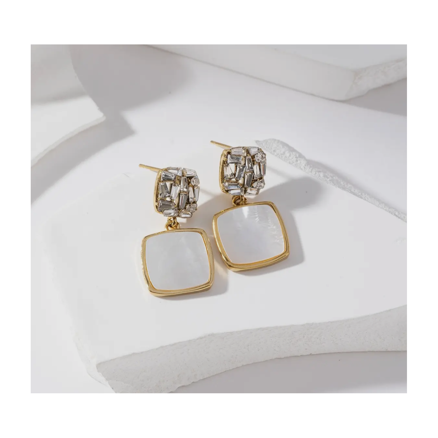 Boucles d'oreilles pendantes strass et nacre